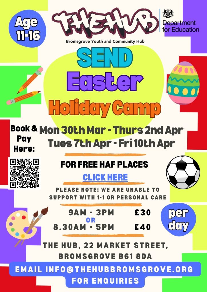 Bookings for our mainstream 8-13 year old, SEND 11-16 and Charford Specific Holiday camps are now live on our website, Please head to the “Youth Services” tab and select Holiday Camps from the drop down box.